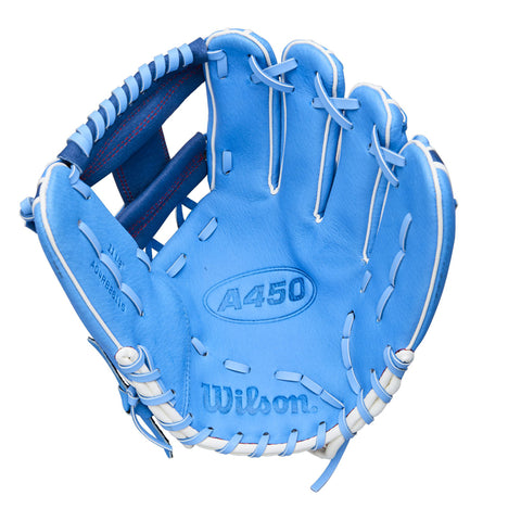 The Wilson A450 gloves are designed to look like Pro Stock models glove worn by some of the top players in Major League Baseball. This series is perfect for young players looking to develop their skills.